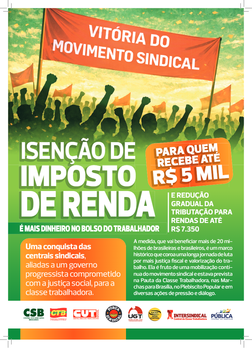 De acordo com as centrais sindicais, a mudança representa uma conquista histórica da luta do movimento sindical e vai beneficiar mais de 20 milhões de brasileiras e brasileiros. A iniciativa é resultado de anos de mobilização, que incluiu marchas a Brasília, o Plebiscito Popular e a construção da Pauta da Classe Trabalhadora, além de ações permanentes de pressão e diálogo com o governo e o Parlamento.